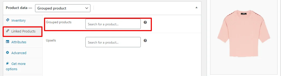 The Linked Product Tab now has a new field ” Grouped Products” and the cross-sells option is removed.