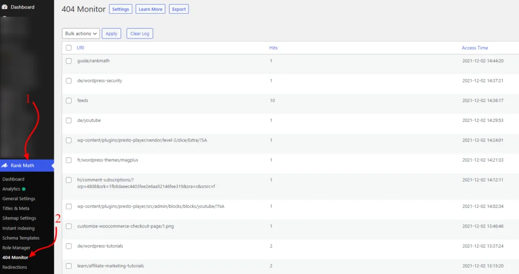 RankMath automatically creates redirection of broken links and allows you to manually redirect any broken link to another link.