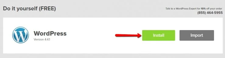 Next click on the install WordPress button. The installer will take about 2 minutes and install a fresh copy of WordPress for you.