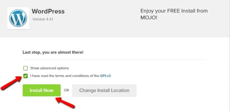 After selecting the domain name to fill the WordPress credentials like the Email, username, and password.