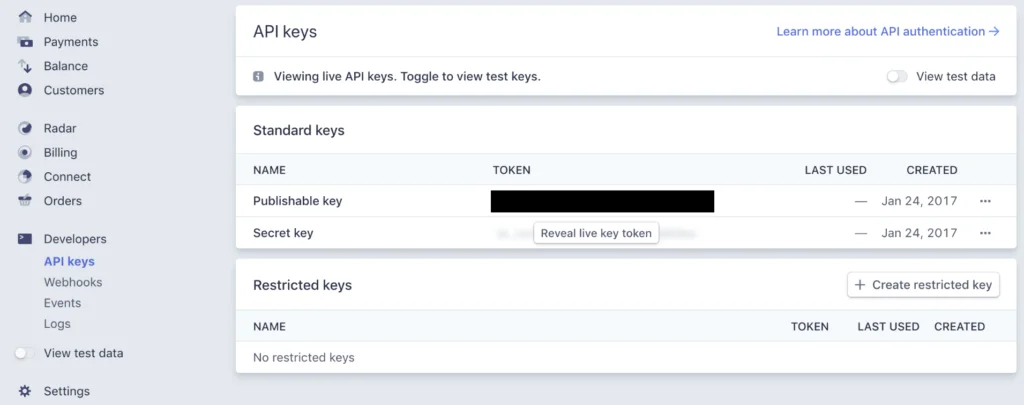 - And lastly paste the LIVE Publishable Key and LIVE Secret Key